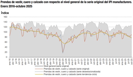 La producción de calzado y partes disminuyó 11,0% en el período enero – octubre de 2025 respecto al mismo período de 2024, y disminuyó 21,1% en el mes de octubre versus igual mes de 2024.